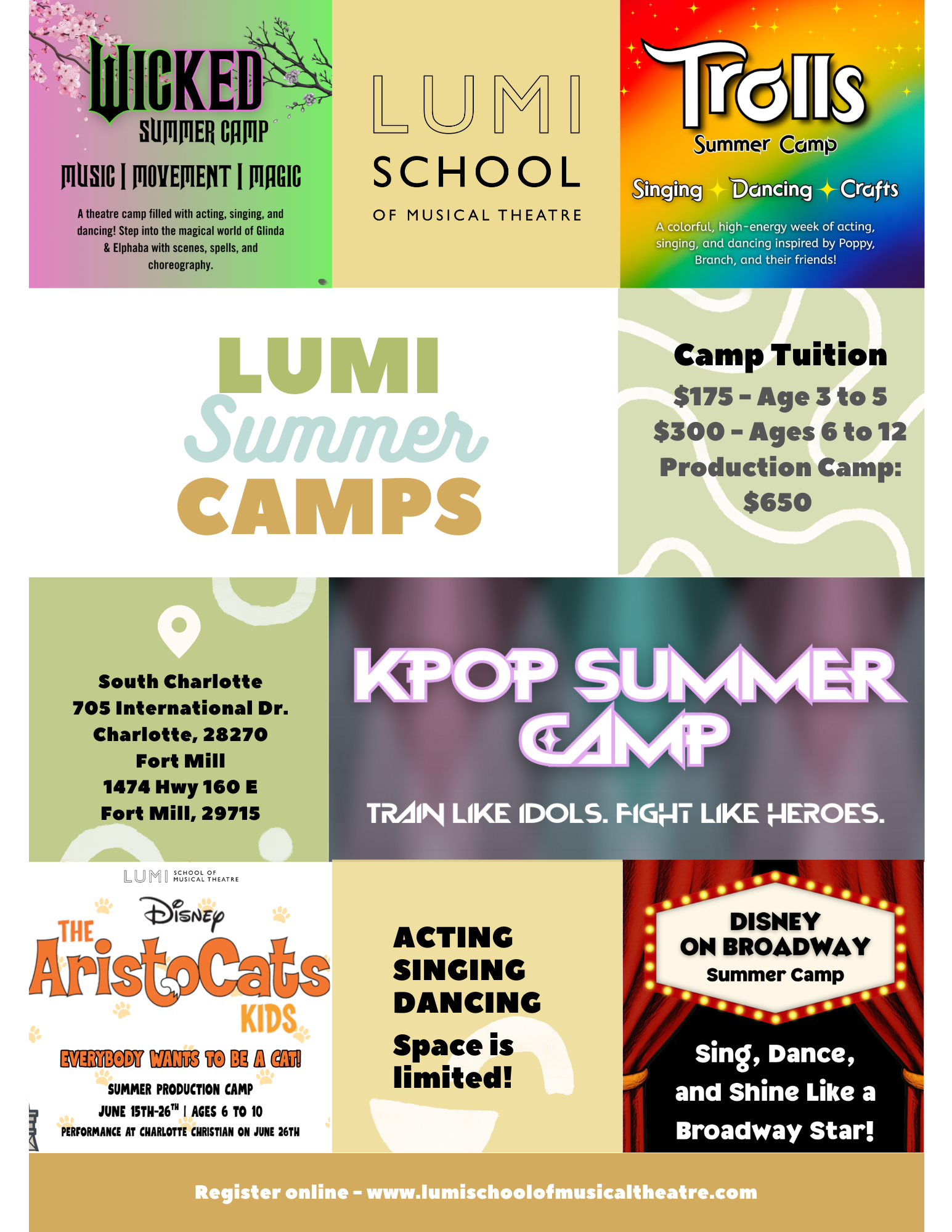 Get ready for a summer full of creativity, imagination, and FUN! Our Lumi Summer Camps are back and perfect for young performers of all levels.